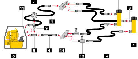 2.設(shè)計四組截止閥,可隨時控制千斤頂同步升與降;
